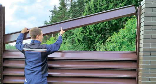 - Установите ламели на забор, прикрепляя их к нему с помощью шурупов или саморезов.